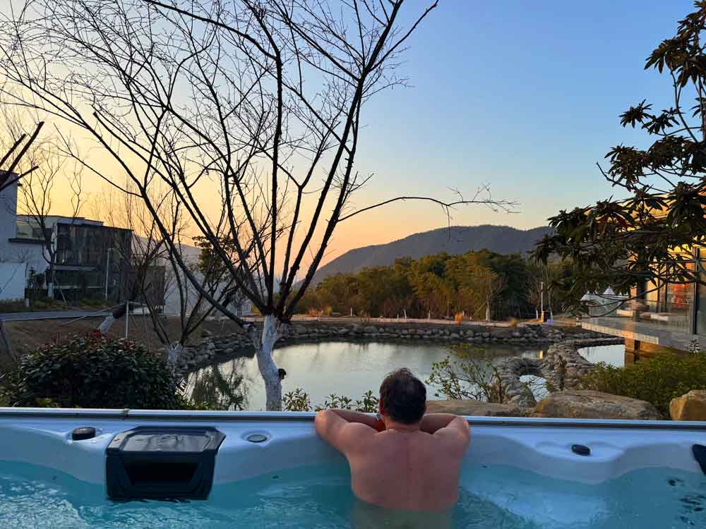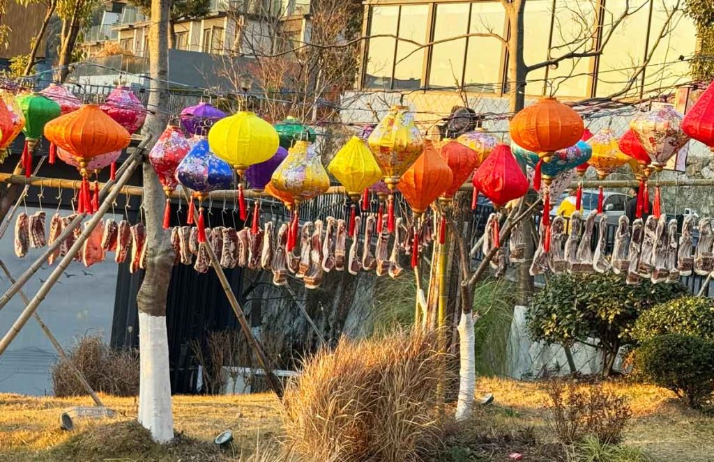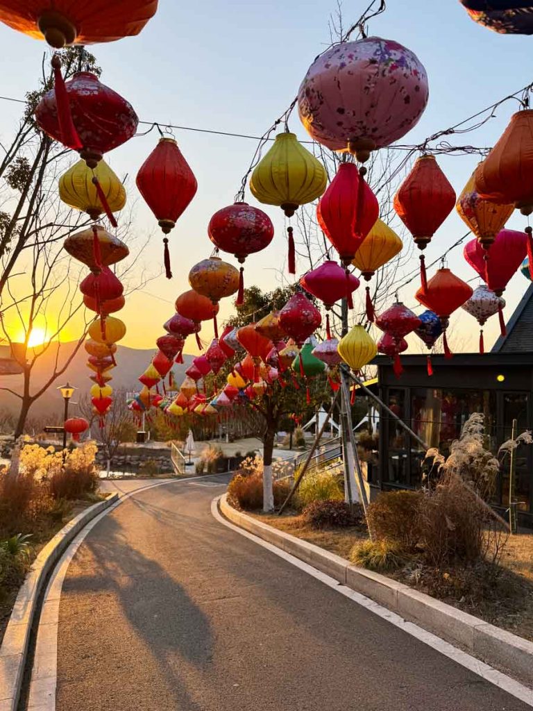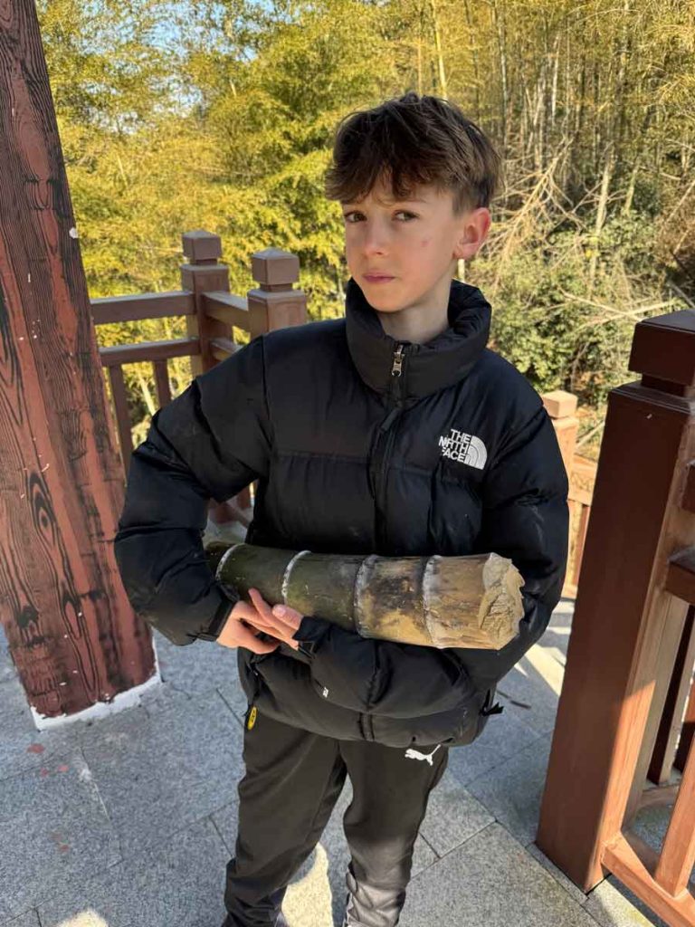 Die meisten Chinesen besuchen in diesen zwei arbeitsfreien Wochen ihre Familien zuhause, es entsteht eine gewaltige Migrationsbewegung raus aus Shanghai. Wir fahren in die Bambuswälder von Moganshan, 200 km außerhalb von Shanghai. Nur einige wenige chinesische Familien verirren sich mit uns in das Ferien-Domizil mitten in den Hügeln von Anji. Einige besondere Neujahrs-Traditionen durften wir aber auch hier erleben. Zwischen Tipi-Zelten und Ententeich gibt es für uns die chinesische Neujahrsgala mit Operngesang auf Leinwand, Riesenwunderkerzen und Raketen sowie Klebreisbällchen mit Sasamfüllung in süßer Ingwer-Suppe. Unser Highlight: die Polonaise um die Feuerschale mit einer chinesischen Großfamilie zum Partyhit „APT“.