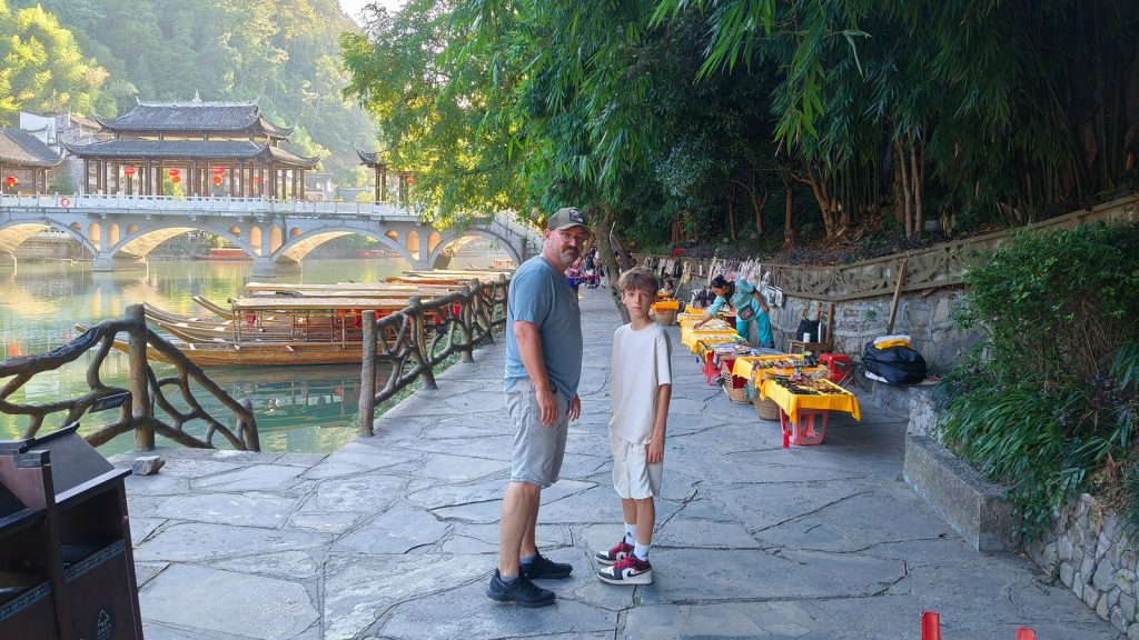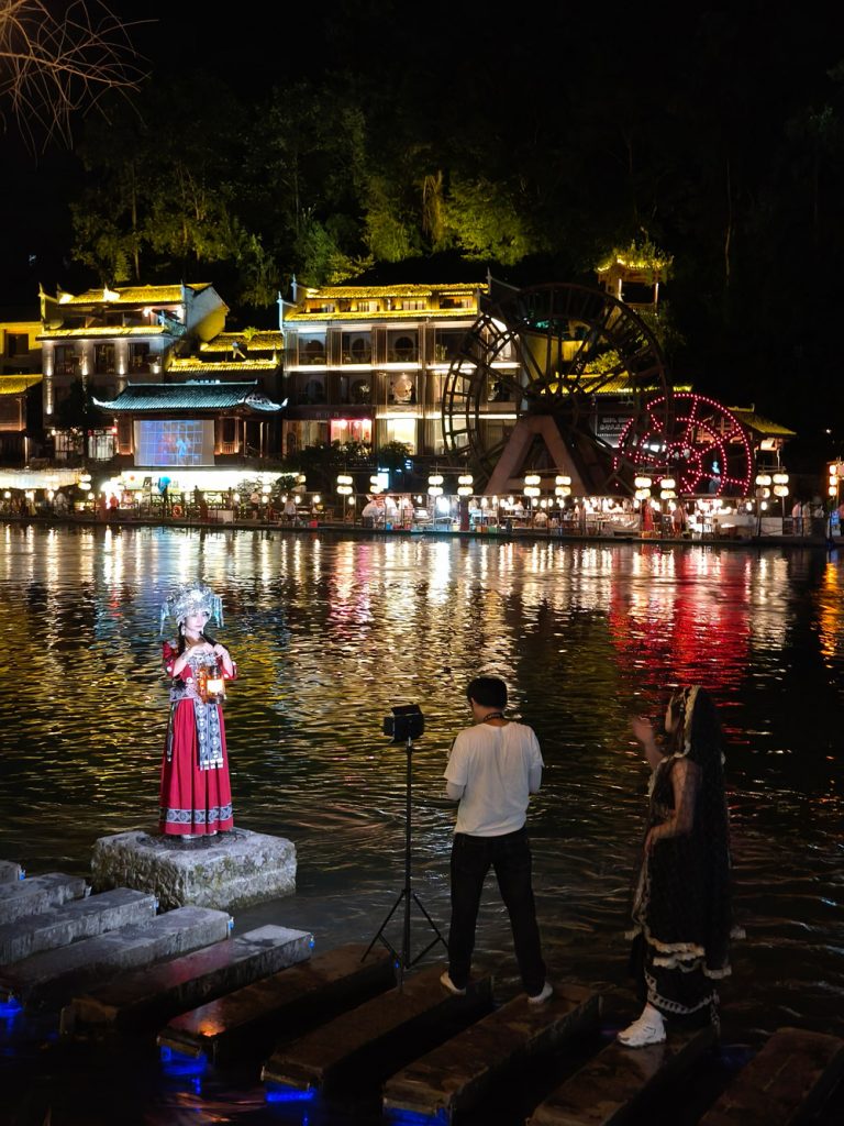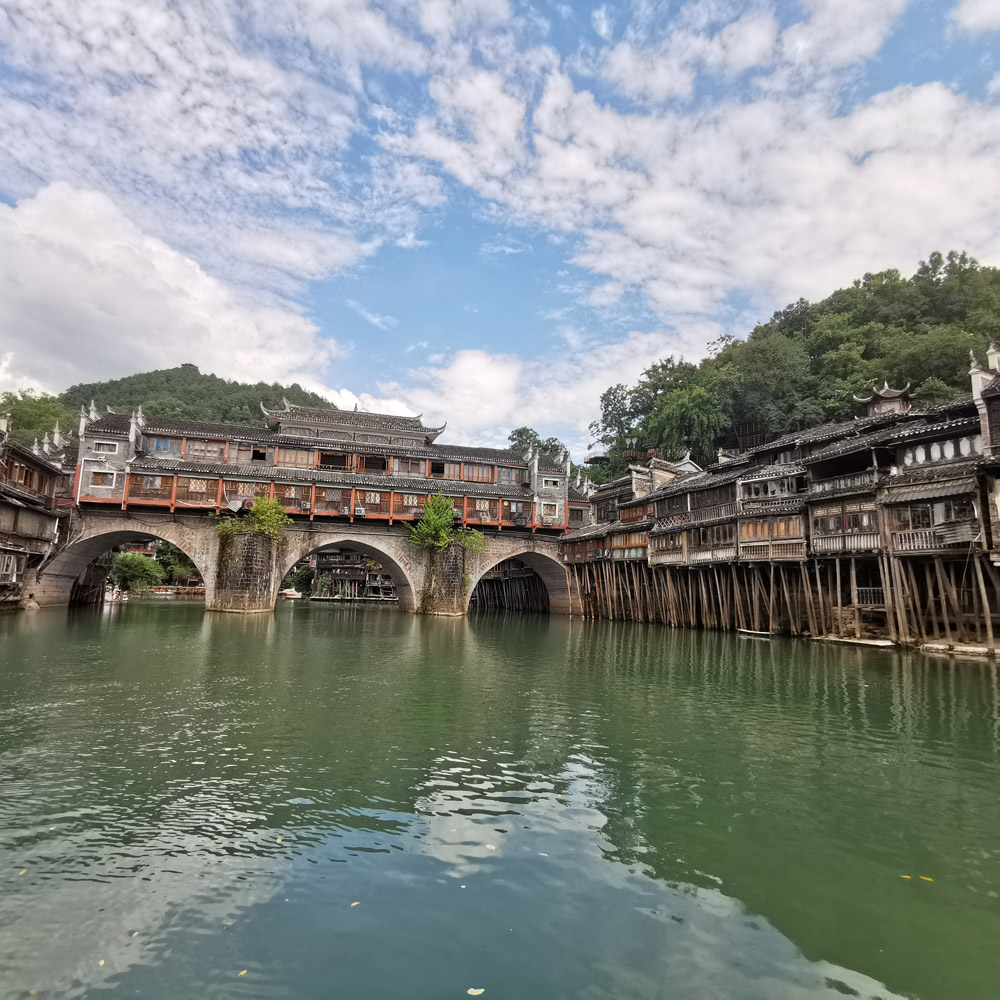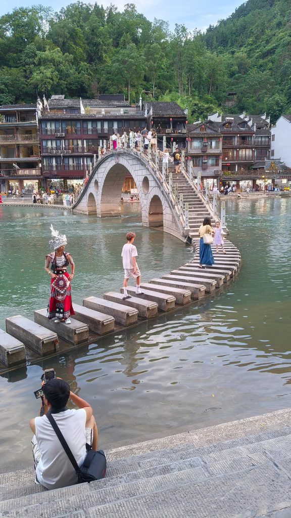 Weiterreise nach Fenghuang in die „Phönix-Stadt“. Diese wurde 2008 zum UNESCO-Weltkulturerbe erklärt. Besonders abends erwacht die „ancient town“ zum Leben, in den engen Gassen drängen sich die Menschen. Aus den kleinen Lokalen riecht es abwechselnd nach der Stinkfrucht Durian oder dem „stinky“ Tofu. Am Eingang sollen allerlei Tiere die Hungrigen anlocken: Hühner, Frösche, Lamas.