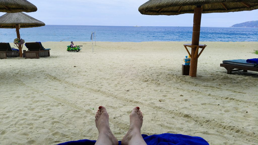 Zum Abschluss (und zum Verarbeiten der Eindrücke) fliegen wir nach Hainan, der beliebten Badeinsel im Süden von China. Das Programm hier: Ausschlafen, ausgiebig frühstücken, Strand, Pool, ausgiebig Abendessen, schlafen – einfach herrlich!