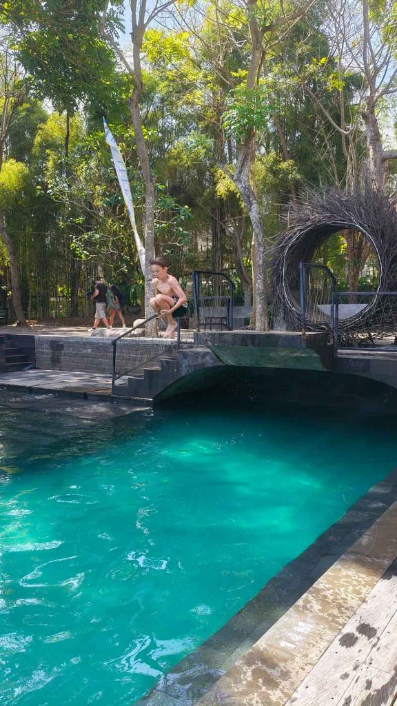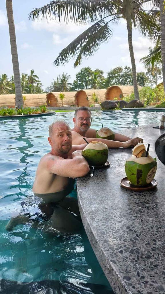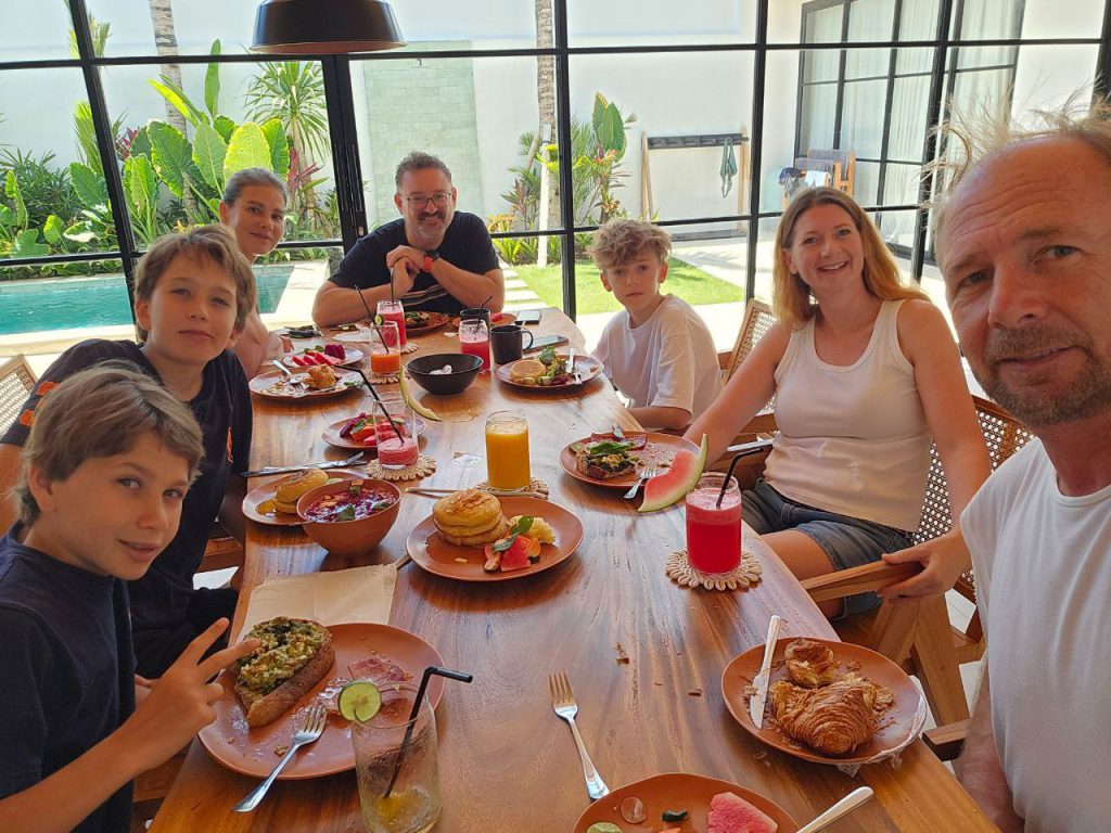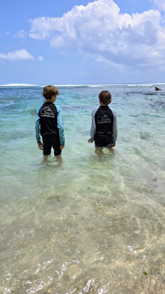 Ankunftshalle Bali. Mein erster Gedanke: Es riecht nach Nelken-Zigaretten, Männer tragen Röcke und Surfbretter unterm Arm. Ja, hier ist mein Bruder zuhause. Einige Tage mit Tim zu verbringen und zu sehen mit welcher Leichtigkeit meine Neffen zwischen drei Sprachen switchen, mit anderen Kindern ins Gespräch kommen und ihr Surftboard besteigen, war einfach toll. Und auch dieses Mal konnte ich das Rästel nicht lösen, warum die beiden einfach nie streiten.